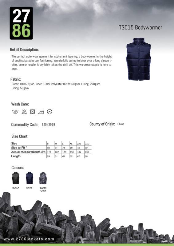 The perfect outerwear garment for statement layering, a bodywarmer is the height of sophisticated urban fashioning. Wonderfully suited to layer over a long sleeve t-shirt, polo or hoodie, it stylishly takes the chill off. This wardrobe staple is here to stay.Tonal coil zip on centre front with signature zip pullerHorizontal stitched wide bafflesFully-lined in tonal polyesterWelt pockets in internal zipped openingSmartphone friendly - internal shockcord loop for headphone wire attachment270gsm lightweight polyester fillInternal back neck hanger loopInternal zipped opening for embroidery accessInternal chest patch pocket with hook and loop fasteningProduct contains no branded neck label.* Removable Kimble or looped garment tagsInner seam label holds important product information on one label with a second label containing brand information which can be cut-away.Age Group: AdultFabric: Outer: 100% Nylon. Inner: 100% PolyesterGender: MalePlus Size: YesProduct Type: Gilets & Body WarmersSize Range: S to 3XLSizing To Fit: S 38″ M 41″ L 44″ XL 46″ 2XL 48″ 3XL 50″Tag: Cut-away inner labelWashing Instructions: Machine wash 30°. Gentle setting. Do not bleach. Iron low. Do not tumble dry. Do not dry cleanWeight (GSM): Outer: 60gsm. Filling: 270gsm. Lining: 50gsm]]>