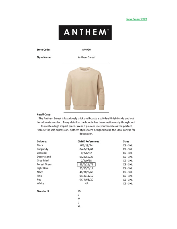Luxuriously thick with a relaxed fit - life takes on an extra level of style and comfort in the Anthem Sweat. The brushed inner fleece feels super soft against the skin, while the ribbed cuffs and hem add subtle detail to the peached finish outer, spun with certified organic yarn. With a palette of classic shades to choose from, they look as good on campus as they do in the workplace. Hardworking fashion items to wear anywhere and everywhere. No sweat.Certified organic yarn and factorySoft hand feelRibbed crew neckBrushed inner fleeceTwin-needle detailCut-and-sew 2x1 ribbed cuffs and hemSelf-coloured neck size labelRelaxed fitWRAP certifiedSEDEX certifiedVegan certified.Accreditations: SEDEX|Amfori BSCI|Certified Recycled|Certified Organic|Oeko-Tex Standard 100|Peta Approved VeganAge Group: AdultFabric: 80% Organic cotton, 20% Recycled polyester. Grey Marl: 73% Organic cotton, 21% Recycled polyester, 6% ViscoseGender: UnisexPlus Size: YesProduct Type: SweatshirtsSize Range: XS to 3XLSizing To Fit: XS 34″ S 36″ M 40″ L 44″ XL 48″ 2XL 52″ 3XL 56″Tag: Sewn TagWashing Instructions: Machine wash 30°. Do not bleach. Iron at max. 150°. Do not tumble dry.Weight (GSM): 320gsm]]>