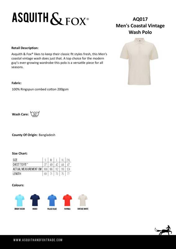 Asquith & Fox Men's coastal vintage wash polo - AQ017