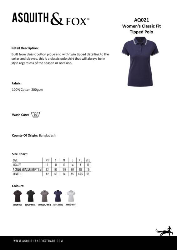 Built from classic cotton pique and with twin tipped detailing to the collar and sleeves, this is a classic polo shirt that will always be in style regardless of the season or occasion.Fitted polo for women with tipped contrast detail to the collar and cuffsTwo contrast coloured buttons on placketContrast colour on side ventsTwin-needle stitching on hemRibbed knit collar and sleeve cuffsMachine washableProduct contains no branded neck labelRemovable Kimble or looped garment tagsInner seam label holds important product information on one label with a second label containing brand information which can be cut-awayPlease note old stock may contain a fixed branded label.Accreditations: Amfori BSCIAge Group: AdultFabric: 100% cotton. Charcoal: 60% cotton, 40% polyester. Heather Grey: 85% cotton, 15% ViscoseGender: FemalePlus Size: NoProduct Type: PolosSize Range: XS to 2XLSizing To Fit: XS 8 S 10 M 12 L 14 XL 16 2XL 18Tag: Cut-away inner labelWashing Instructions: Domestic wash at 30cWeight (GSM): 200gsm]]>