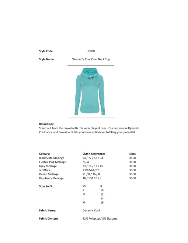 Stand out from the crowd with this versatile pull-over. The responsive Dynamic Cool fabric and feminine fit lets you focus entirely on fulfilling your potential. With a fit designed to flatter the female figure and a hood that creates a cowl neck look, this top is perfect for layering before, during or after a workout.AWDis’ own CoolFit blended fabric containing elastane that provides stretch for comfort and a great fitCowl neck style hoodSporty fitIdeal for layeringRaglan sleeve design creates ease of movementReflective elements on hood for low light conditionsReflective tab on back of neck helps keep ear phone cords in placeToggled hoodFlat-lock stitching detailThumb hole openingSimple tear off label makes it perfect for rebrandingVegan certifiedBSCI certified.Accreditations: Amfori BSCI|Peta Approved VeganAge Group: AdultFabric: 92% Polyester, 8% ElastaneGender: FemalePlus Size: NoProduct Type: Sports OvertopsSize Range: XS to XLSizing To Fit: XS 8 S 10 M 12 L 14 XL 16Tag: Tear-outWashing Instructions: Machine wash 30°. Do not bleach. Do not iron. Do not tumble dry. Do not dry clean.Weight (GSM): 210gsm]]>