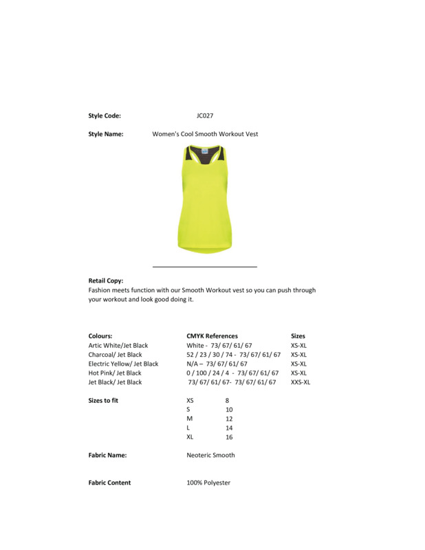Fashion meets function with the Smooth workout vest so you can push through your workout and look good doing it. With a scoop neckline and a drop arm hole design for maximum range of movement, this lightweight vest is perfect for overlaying a crop top or sports bra. The Neoteric™ smooth fabric has been engineered to keep you cool and comfortable throughout your workout, while providing an excellent embellishment surface.Girlie fit vest with mesh panel and racerback stylingFeaturing high performance wicking fabric and dropped hem at backWRAP certifiedVegan certifiedBSCI certifiedOeko-Tex certifiedSEDEX certified.Accreditations: Amfori BSCI|Oeko-Tex|Sedex|WRAP|Peta Approved VeganAge Group: AdultFabric: 100% PolyesterGender: FemalePlus Size: NoProduct Type: VestsSize Exclusions: *XXS only available in these coloursSize Range: XS to XLSizing To Fit: XXS* 6 XS 8 S 10 M 12 L 14 XL 16Tag: Tear-outWashing Instructions: Machine wash 30°. Do not bleach. Do not iron. Do not tumble dry. Do not dry clean.Weight (GSM): 135gsm]]>