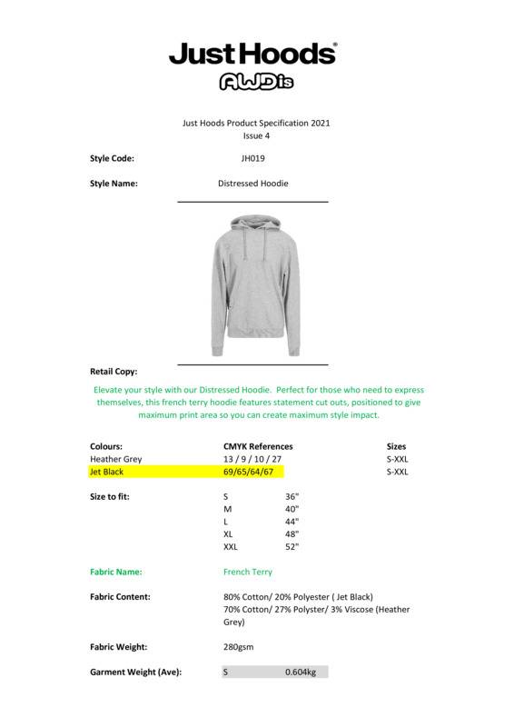 Crafted from a soft distressed cotton faced fabric. Pair with jeans for an edgier trendy look. Features lined hood and set-in sleeves.Distressed finishDouble fabric hoodRound lace drawcordsKangaroo pouch pocketRibbed cuffs and hemSoft cotton faced fabric creates ideal printing surfaceSimple tear-out label makes it perfect for rebrandingFrench terryWRAP certifiedSEDEX certifiedVegan certified.Accreditations: WRAP|Sedex|Peta Approved VeganAge Group: AdultFabric: 80% Ringspun cotton, 20% PolyesterGender: MaleProduct Type: HoodiesSize Range: S to 2XLSizing To Fit: S 36″ M 40″ L 44″ XL 48″ 2XL 52″Tag: Tear-outWashing Instructions: Machine wash 30 degrees. Do not bleach. Tumble dry possible at low heat. Cool Iron. Do not dry clean. Wash dark colour separately.Weight (GSM): 280gsm]]>