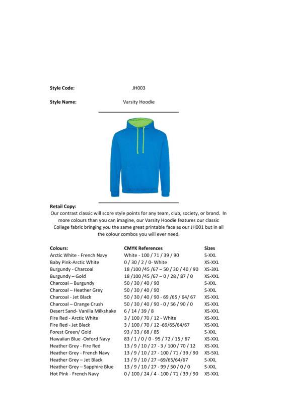 Modern and versatile, our varsity hoodie is available in an array of excellent contrasts making it the ideal casual wear hoodie.Twin needle stitching detailing, double fabric hood with contrast inner, contrast flat lace drawcordsKangaroo pouch pocketRibbed cuff and hemWorldwide Responsible Accredited Production (WRAP) certified productionSoft cotton faced fabric creates ideal printing surfaceSimple tear out label makes it perfect for rebrandingBrushed inner fabricWRAP certifiedSEDEX certifiedVegan certified.Accreditations: WRAP|Sedex|Peta Approved VeganAge Group: AdultFabric: 80% Ringspun cotton, 20% PolyesterGender: UnisexPlus Size: YesProduct Type: HoodiesSize Exclusions: *XS only available in these colours. †3XL only available in these colours. ?4XL - 5XL only available in these coloursSize Range: XS to 5XLSizing To Fit: XS* 34″ S 36″ M 40″ L 44″ XL 48″ 2XL 52″ 3XL† 56″ 4XL? 60″ 5XL? 62″Tag: Tear-outWashing Instructions: Machine wash 30°. Do not bleach. Tumble dry low heat. Low iron. Do not dry cleanWeight (GSM): 280gsm]]>