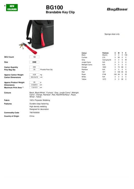 Bagbase Brandable key clip