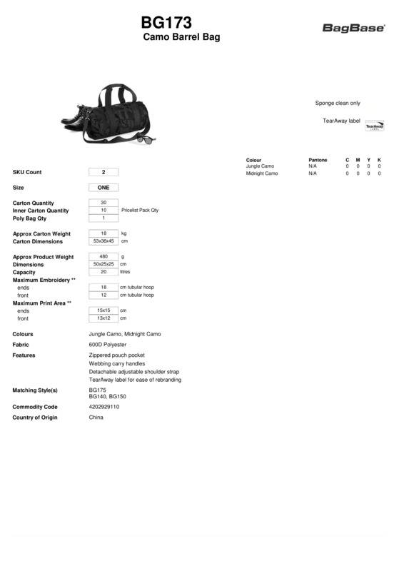 Bagbase Camo barrel bag