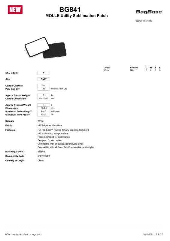Bagbase MOLLE utility sublimation patch