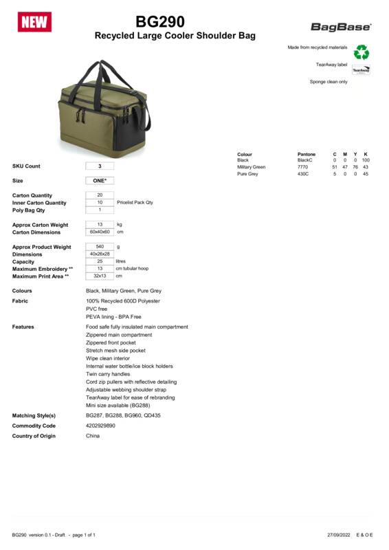 When outdoor adventures are on the agenda, this insulated cooler shoulder bag is the perfect way to picnic. PVC-free and made from 100% recycled polyester, it’s a smart choice in more ways than one. Keep food, drink and other essentials cool, whether you’re planning a roadtrip, a festival or a day at the beach.100% Recycled 600D polyesterPVC-freePEVA lining – BPA-freeFood-safe, fully insulated main compartmentZipped main compartmentZipped front pocketStretch mesh side pocketWipe-clean interiorInternal water bottle/ice block holdersTwin carry handlesCord zip pulls with reflective detailingAdjustable webbing shoulder strapTearAway label for easy rebranding.Age Group: AdultBag Capacity: 25 litresBag Dimensions: 40 x 26 x 28cmFabric: 100% Recycled 600D polyesterGender: UnisexPlus Size: NoProduct Type: BagsSize Range: One sizeSizing To Fit: One sizeTag: Tear-awayWashing Instructions: Sponge clean onlyWeight (GSM): 540g]]>