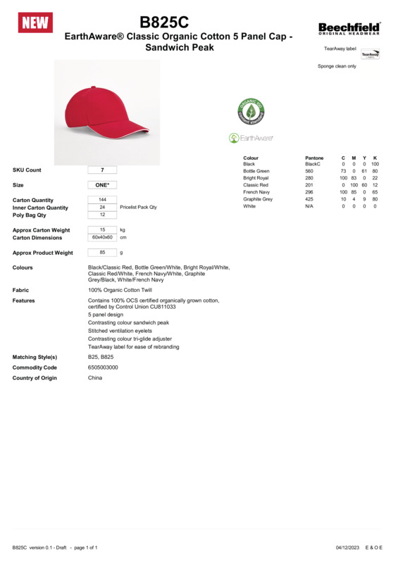 Master the preppy, collegiate aesthetic with a classic six-panel cap, complete with a contrast sandwich peak and eyelets. Made from 100% OCS-certified cotton, all EarthAware® styles benefit from premium, hard-wearing fabric that is also eco-conscious and comfortable to wear. The organic cotton used has a low carbon footprint and minimal ecological impact, making the collection particularly appealing to the sustainably savvy customer. Contains 100% OCS certified, organically grown cotton, certified by Control Union CU8110335-panel designContrasting colour sandwich peakStitched ventilation eyeletsContrasting colour tri-glide adjusterTearAway label for ease of rebranding.Accreditations: Organic 100 Content StandardAge Group: AdultFabric: 100% Organic cotton twillGender: UnisexPlus Size: NoProduct Type: CapsSize Range: One sizeSizing To Fit: One sizeTag: Tear-awayWashing Instructions: Sponge clean only.Weight (GSM): 85g]]>