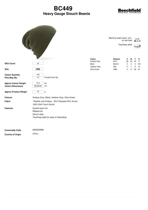 Beechfield Heavy gauge slouch beanie