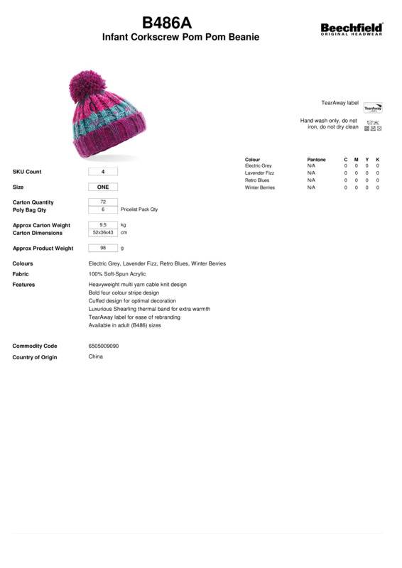 Turn up the contrast with this corkscrew pom pom beanie. Inspired by the great outdoors, offering an array of rainbow hues to brighten up any mini-me wardrobe. This statement headwear features a luxe shearling thermal band and makes the ultimate cosy cover-up on a chilly day.Tear-out label for ease of rebrandingCuffed design for optimal decorationHeavyweight multi yarn cable knit designLuxurious shearling thermal band for extra warmthBold four colour stripe designAvailable in adult sizesBSCI certifiedReach certified.Accreditations: Amfori BSCI|ReachAge Group: KidsFabric: 100% Soft-spun acrylicGender: UnisexPlus Size: NoProduct Type: BeaniesSize Range: Infant to JuniorSizing To Fit: Infant JuniorTag: Tear-outWeight (GSM): 98g]]>