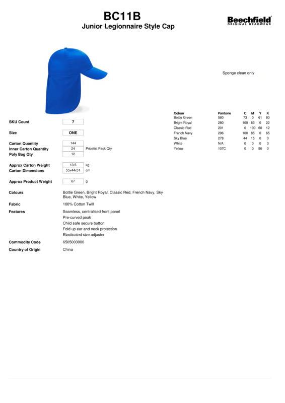 Beechfield Junior legionnaire-style cap