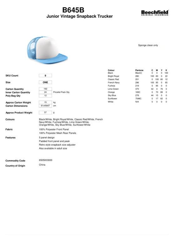 Beechfield Junior vintage snapback trucker