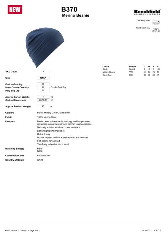 Made from 100% merino wool, a breathable, moisture-wicking fabric which helps to regulate body temperature, the BC370 provides optimum comfort in all conditions. This relaxed fit design is soft on the skin, whilst also being naturally antibacterial and odour-resistant. Flat seams put comfort first, while a double-layered cuff creates added warmth for lightweight layering during the cooler seasons.Merino wool is breathable, wicking and temperature-regulating, providing optimum comfort in all conditionsNaturally antibacterial and odour-resistantLightweight performance fitQuick-dryingDouble-layered cuff for added warmth and comfortFlat seams for comfortTearAway adhesive fabric labelBSCI certifiedReach certified.Accreditations: Amfori BSCI|ReachAge Group: AdultFabric: 100% Merino woolGender: UnisexPlus Size: NoProduct Type: BeaniesSize Range: One sizeSizing To Fit: One sizeTag: Tear-awayWashing Instructions: Sponge clean onlyWeight (GSM): 23g]]>