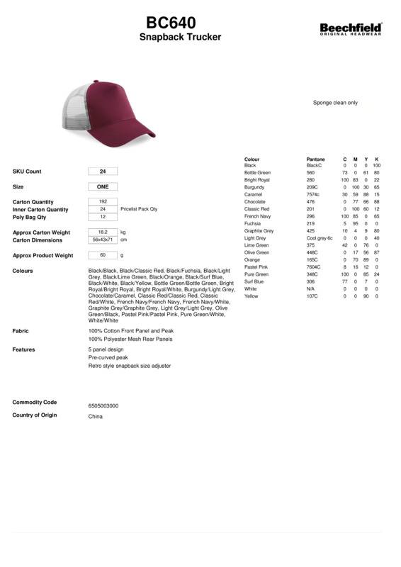 Beechfield Snapback trucker