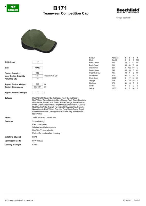 Beechfield Teamwear competition cap