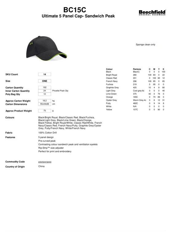 Beechfield Ultimate 5-panel cap - sandwich peak