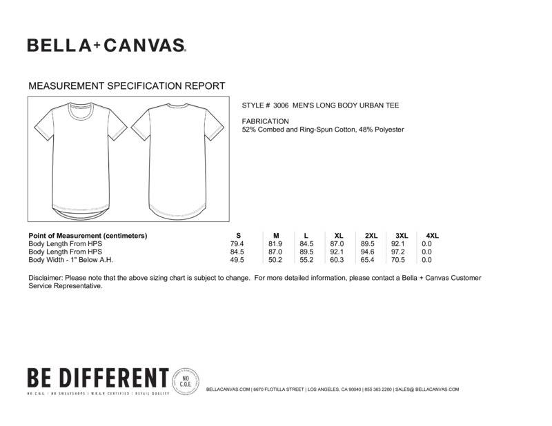 Inspired by the massive streetwear trend, the long body tee features side seams and a rounded drop-tail hem. This statement making Jersey basic is available in premium combed and ringspun cotton (solid colours) or cotton-poly (heather colours).Side seamedRetail fitLonger bodySlight curve bottom hemWRAP certifiedFair Labour certified.Accreditations: WRAP|Fair Labour AssociationAge Group: AdultFabric: 100% Airlume combed and ringspun cotton, 30 single. Dark Grey Heather: 52% Combed and ringspun cotton, 48% Polyester, 30 singleGender: UnisexPlus Size: NoProduct Type: T-ShirtsSize Range: S to 2XLSizing To Fit: S 34/37″ M 38/41″ L 42/45″ XL 46/49″ 2XL 50/53″Tag: Tear-outWashing Instructions: Machine wash warm, inside out with like colours. Only non-chlorine bleach. Tumble dry low, medium/hot iron. Do not iron decoration.Weight (GSM): 142gsm]]>
