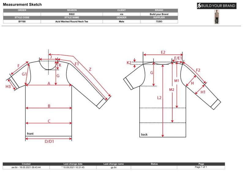 The elaborate acid wash of this men’s shirt brings a touch of urban style to everyday life. With a regular fit and a ribbed crew neck, it can co-ordinate with any wardrobe, combining with other pieces. The tee can also be personalised with printing or embroidery.Natural fibre, knittedRound neckSet-in sleeveNo pocketsBSCI certifiedOeko-Tex certifiedSEDEX certified.Accreditations: Amfori BSCI|Oeko-Tex|SedexAge Group: AdultFabric: Shell Fabric 1: 100% Cotton, single JerseyGender: MalePlus Size: YesProduct Type: T-ShirtsSize Range: XS to 5XLSizing To Fit: XS 36″ S 38″ M 40″ L 43″ XL 45″ 2XL 48″ 3XL 51″ 4XL 54″ 5XL 58″Tag: Tear-outWashing Instructions: 30°C easycare. Do not bleach. Do not tumble dry. Not hot iron. Do not dry clean.Weight (GSM): 180gsm]]>