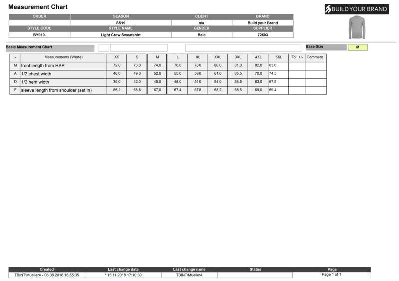 A casual item that is comfortable to wear, the long-cut light crew sweatshirt can be customized any way you want. Trendy overlocked seams and cross-stitching on the neckline, classic features of crew necks, round off the classically sporty design; combined with the wide ribbing on hem and cuffs, it creates a fashionable look.Look good and feel comfortable with the light crew sweatshirt from Build Your BrandThe long cut ensure a comfortable fitFurther details include; set-in sleeves, fashionable overlook seams at the hem and sleeves, typical cross-stitching below the neck opening , neck tape, rib cuff at the hem, neck and sleeve opening and neck half-moon upgrade this basic itemThis product is ideal for rebranding, print and embroideryOeko-Tex certified.Accreditations: Oeko-TexAge Group: AdultFabric: 100% Cotton. Heather Grey: 90% Cotton, 10% ViscoseGender: MalePlus Size: NoProduct Type: SweatshirtsSize Range: S to 2XLSizing To Fit: S 39″ M 41″ L 43″ XL 46″ 2XL 48″Tag: Tear-outWashing Instructions: 30° Mild fine machine wash. Do not bleach. Do not tumble dry. Iron at low temperature. Do not dry clean.Weight (GSM): 210gsm]]>