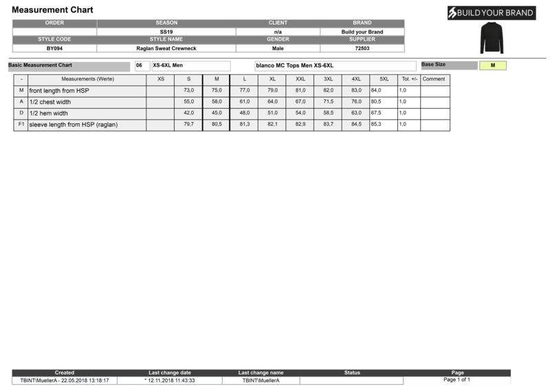 The raglan sleeves not only make this classic crew neck extra comfortable, they also give it an extra sporty look. Wide ribbed cuffs on hem and sleeves complete the look. The cotton blend is perfect for finishing with screen or flex printing. This item is manufactured in a FAMA Certified factory. FAMA stands for Facility and Merchandise Authorisation and is a high standard production certificate.Inside brushed sweat fabric, ribbed cuffs at hem, neck and sleeve openings, raglan sleevesThis item is manufactured in a FAMA Certified factoryFAMA stands for Facility and Merchandise Authorisation and is a high standard production certificateFAMA certified.Accreditations: Amfori BSCI|FAMAAge Group: AdultFabric: 65% Cotton, 35% PolyesterGender: MalePlus Size: YesProduct Type: SweatshirtsSize Range: S to 5XLSizing To Fit: S 44″ M 47″ L 49″ XL 51″ 2XL 54″ 3XL 57″ 4XL 61″ 5XL 64″Tag: TaglessWashing Instructions: Wash and iron inside out, wash with similar colours, machine wash 30°C gentle, do not bleach, do not tumble dry, iron at low temperature, do not dry clean.Weight (GSM): 250gsm]]>