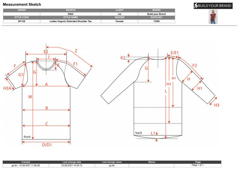 Build Your Brand Women's organic extended shoulder tee