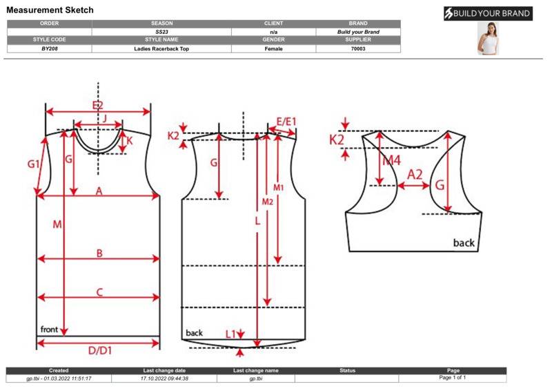 Equipped with a dynamic, sporty racerback cut, the otherwise plain, single-coloured women’s top sets a style statement. This women’s top offers a high crew neck on the front, while the cut is slim fit and the length is kept short. A pleasant wear is ensured by a material mix of cotton and elastane. The summery style can be individually refined further, either by flock or screen printing or with embroidery.RacerbackSleevelessSlim fitCertified amfori BSCI and Oeko-Tex.Accreditations: Amfori BSCI|Oeko-TexAge Group: AdultFabric: 95% Cotton, 5% Elastane stretch JerseyGender: FemalePlus Size: YesProduct Type: VestsSize Range: XS – 5XLSizing To Fit: XS 8 S 10 M 12 L 14 XL 16 2XL 18 3XL 20 4XL 22 5XL 24Tag: Tear-outWashing Instructions: Machine wash 30°C easycare. Do not bleach. Do not hot iron. Do not tumble dry. Do not dry clean.Weight (GSM): 180gsm]]>
