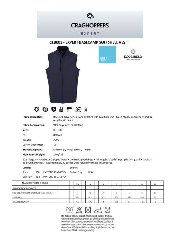A quality softshell vest that’s a workwear staple, providing a lightweight extra layer without restricting movement. The water-repellent outer shrugs off showers, while the fleecy inner face traps heat at the core. A smart choice for changeable conditions.Water-resistant and windproof softshell vest with 3 pocketsRecycled polyester elastane softshell with EcoShield DWR finishStriped microfleece back and recycled zip tapesApproximately 30 bottles were recycled to make this product.Age Group: AdultFabric: 94% Polyester, 6% ElastaneGender: UnisexPlus Size: YesProduct Type: SoftshellsSize Range: XS to 3XLSizing To Fit: XS 36″ S 38″ M 40″ L 43″ XL 46″ 2XL 49″ 3XL 52″Tag: Sewn TagWashing Instructions: Wash with similar colours. Do not use bleach or water softeners. Can be tumble dried on a low setting. Do not iron. Do not dry clean. Do not wring. Close all fasteners before washing and drying. Apply heat as per care instructions if DWR needs regenerating.Weight (GSM): 270gsm]]>