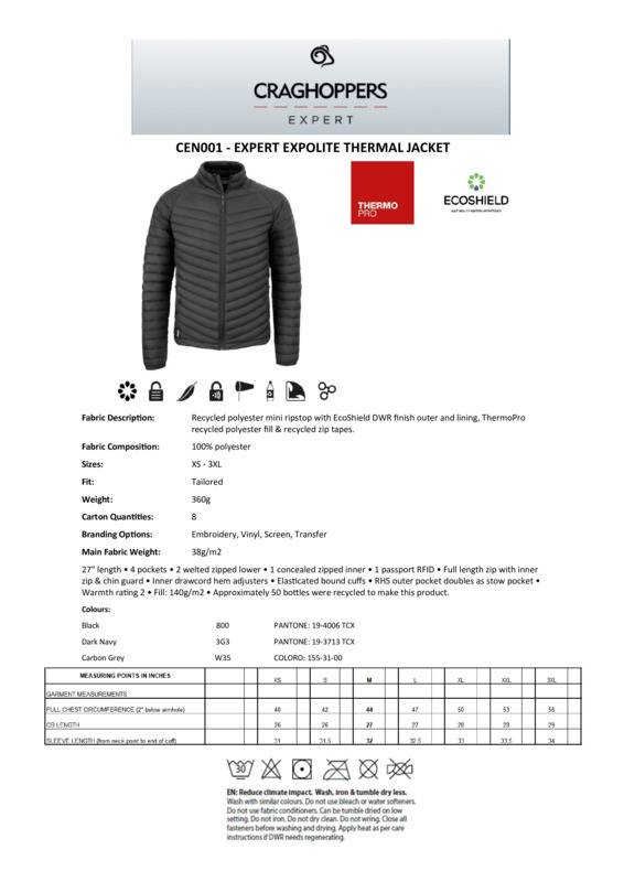 A cold-weather standard, this super-light, compressible jacket is a great addition to any workwear collection. Expolite’s slender diagonal baffles feature high-loft ThermoPro synthetic fill for down-like insulation. Incorporating handy zipped pockets (one doubles as a stow pocket).Water-resistant padded jacket with a full-length zip and 4 pockets, one of which doubles as a stow pocketRecycled polyester mini ripstop with EcoShield DWR finish outer and liningThermoPro recycled polyester fill and recycled zip tapes4 pockets: 2 welted zipped lower, 1 concealed zipped inner and1 passport RFID.Age Group: AdultFabric: 100% PolyesterGender: UnisexPlus Size: YesProduct Type: JacketsSize Range: XS to 3XLSizing To Fit: XS 36″ S 38″ M 40″ L 43″ XL 46″ 2XL 49″ 3XL 52″Tag: Sewn TagWashing Instructions: Wash with similar colours. Do not use bleach or water softeners. Can be tumble dried on a low setting. Do not iron. Do not dry clean. Do not wring. Close all fasteners before washing and drying. Apply heat as per care instructions if DWR needs regenerating.Weight (GSM): 38gsm]]>