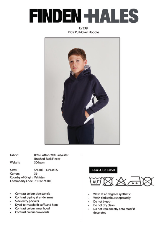Make a statement in this stylish hoodie. Featuring contrast colour sleeve panels, a large kangaroo pocket and flat contrast drawcord, this style is both practical and on-trend.Contrast side panelling and contrast piping on raglan sleeve with contrast-lined drawstring hood and angled pouch pocketsSEDEX certifiedOeko-Tex certifiedBSCI certified.Accreditations: Amfori BSCI|Oeko-Tex|SedexAge Group: KidsFabric: 80% Cotton, 20% Polyester brushed back fleeceGender: UnisexPlus Size: NoProduct Type: HoodiesSize Range: 5/6 to 13/14Sizing To Fit: 5/6 24/26″ 7/8 26/28″ 9/10 28/30″ 11/12 30/32″ 13/14 32/34″Tag: Sewn TagWashing Instructions: Wash at 40 degrees synthetic. Do not bleach. Do not tumble dry. 2 dot iron. Do not dry clean. Wash at 40 degrees. Wash dark colours separately. Don’t iron directly onto motif if decoratedWeight (GSM): 300gsm]]>