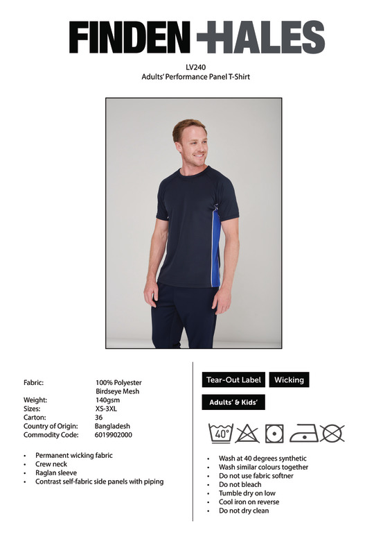 This permanent wicking t-shirt provides the ultimate in comfort performance wear, keeping you cool and dry when you need it most. With a contemporary fit and contrast colour panels, the sporty styling helps you stand out during any team activity.Crew neck t-shirt with raglan sleeves100% Polyester wicking fabricContrast side panels with pipingBSCI certified.Accreditations: Amfori BSCIAge Group: AdultFabric: 100% Polyester birdseye meshGender: UnisexPlus Size: YesProduct Type: T-ShirtsSize Range: XS to 3XLSizing To Fit: XS 34/36″ S 36/38″ M 38/40″ L 42″ XL 44/46″ 2XL 48″ 3XL 50/52″Tag: Sewn TagWashing Instructions: Wash at 40 degrees synthetic. Wash dark colours separately. Do not bleach. Do not dry clean. Tumble dry low temperature. Cool iron on reverse.Weight (GSM): 140gsm]]>