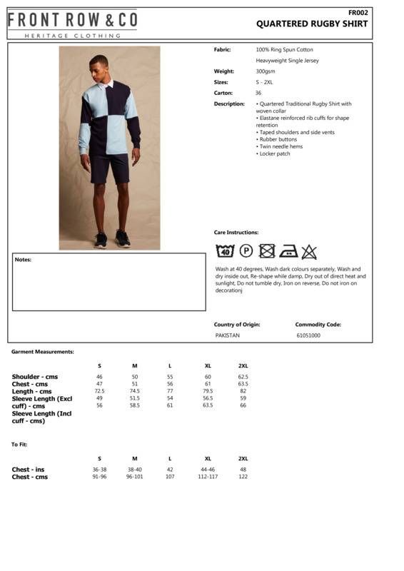 The long-sleeved quartered rugby shirt has a great broad appeal from fashion brands to traditional clubs. Made from heavyweight 100% ringspun cotton, it has a traditional woven rugby collar, taped shoulders, side vents and elastane reinforced cuffs exemplary of the quality design detail Front Row is known for.Quartered rugby shirt in heavy jerseyTraditional woven rugby collar with cotton webbingTaped shoulders and side vents, rubber buttonsElastane re-inforced cuffs for shape retention with cotton webbingTwin-needle hemsWRAP certificationRugby leisurewear garments are for leisure use onlyWRAP certified.Plus Size: NoSustainable: No]]>