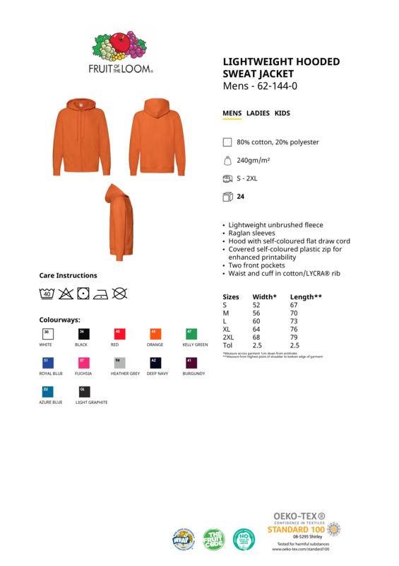 Fruit of the Loom Lightweight hooded sweatshirt jacket