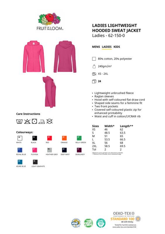 Fruit of the Loom Women's lightweight hooded sweatshirt jacket