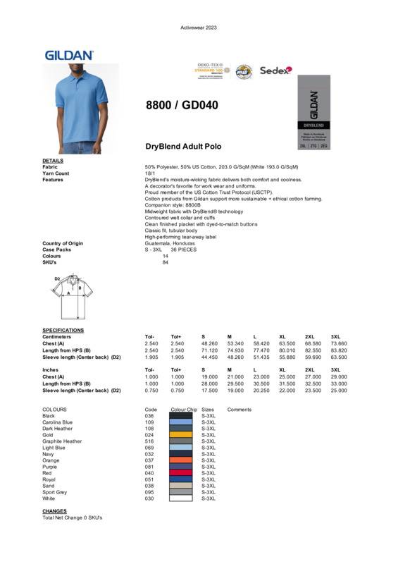 This beautifully made polo has even more going for it than its good looks. That’s because the soft yet sturdy Jersey fabric combines cotton ringspun and durable polyester yarns in a shirt that feels like a classic, yet wicks moisture from skin for stay dry comfort.DryBlend® technology delivers moisture-wicking propertiesContoured welt collar and cuffsTearaway labelClean finished placket with reinforced bottom box3 woodtone buttonsTwin-needle bottom hem.Accreditations: SEDEX|WRAP|Fair Labour Association (FLA) |Better Cotton|USCTP|Oeko-Tex Standard 100|REACHAge Group: AdultFabric: 50% US Cotton, 50% PolyesterGender: MalePlus Size: NoProduct Type: PolosSize Range: S to 3XLSizing To Fit: S 34/36″ M 38/40″ L 42/44″ XL 46″ 2XL 48″ 3XL 50″Tag: Sewn TagWashing Instructions: Machine wash warm. Inside out, with like colours. Only non-chlorine bleach. Tumble dry medium. Do not iron if decorated. Do not dry cleanWeight (GSM): White 193gsm, Colours 203gsm]]>
