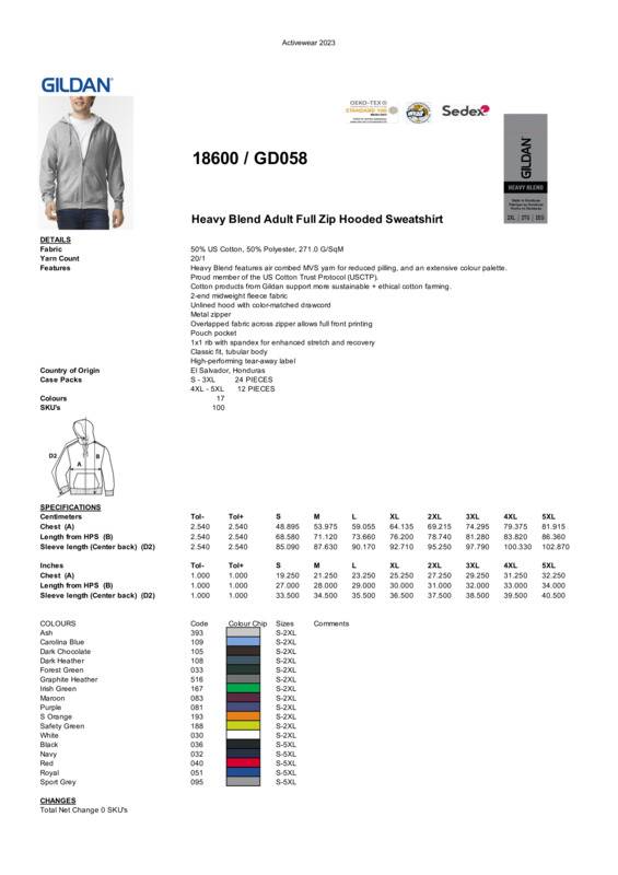 Once an athletic essential, this robust full-zip hooded sweatshirt is now an anchor piece in today’s casual wardrobe. As its name indicates, the cushiony pre-shrunk fleece is satisfyingly cosy with a soft brushed interior for warmth and comfort. And here's a detail others often overlook; overlapped fabric across the metal zipper allows for full front printing, so you can maximise the impact of your imprint.Air jet yarn which has a softer feel and reduced pillingTearaway LabelMetal zipperOverlapped fabric across zipper allows full front printingPouch pockets1x1 rib with elastaneUnlined-lined hood with matching drawstringTwin-needle stitching and set-in sleeves.Accreditations: SEDEX|WRAP|Fair Labour Association (FLA) |Better Cotton|USCTP|Oeko-Tex Standard 100|REACHAge Group: AdultFabric: 50% US Cotton, 50% PolyesterGender: UnisexPlus Size: YesProduct Type: HoodiesSize Exclusions: *3XL only available in these colours. †4XL and 5XL only available in these coloursSize Range: S to 5XLSizing To Fit: S 34/36″ M 38/40″ L 42/44″ XL 46/48″ 2XL 50/52″ 3XL* 54/56″ 4XL† 58/60″ 5XL† 62/64″Tag: Sewn TagWashing Instructions: Machine wash warm. Inside out, with like colours. Only non-chlorine bleach. Tumble dry medium. Do not iron if decorated. Do not dry cleanWeight (GSM): White 265gsm, Colours 279gsm]]>