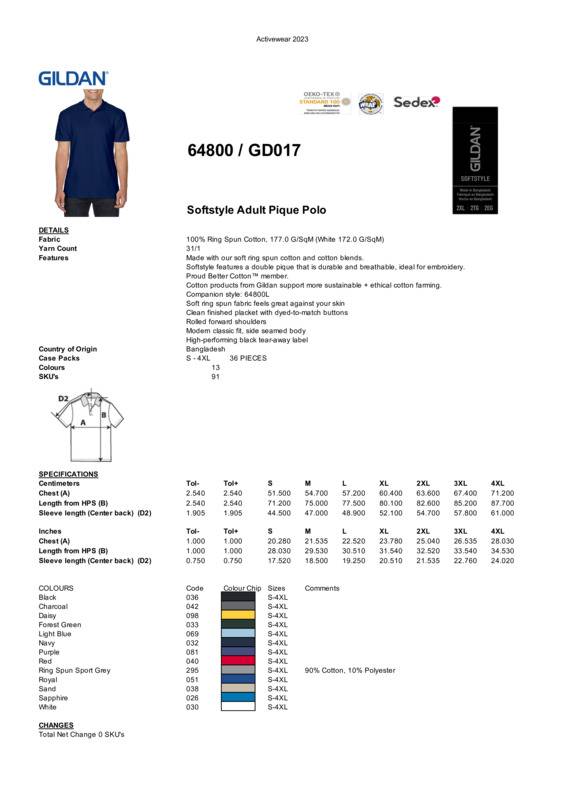 This polo is precisely what the market has been clamouring for – a polo that's super-soft, substantial and meticulously styled. The fabric is a lofty, touchable double piqué knit of pure ringspun cotton yarns – a definite step up from the standard sport shirt, plus it's detailed to the highest degree from roll-resistant welt collar and clean finished placket to double-needle hem.100% Ringspun cottonEuro fit - sleeker fit in shoulder and sleeveSide seamedContoured welt collarTearaway labelRolled forward topstitched shoulderClean finished placket with reinforced bottom box2 colour-matched pearlised buttonsTwin needle bottom hemCompanion style 64800L (GD018).Accreditations: SEDEX|WRAP|Fair Labour Association (FLA) |Better Cotton|Oeko-Tex Standard 100|REACHAge Group: AdultFabric: 100% Ringspun Cotton. Ringspun Sport Grey: 90% Cotton, 10% PolyesterGender: MalePlus Size: NoProduct Type: PolosSize Range: S to 4XLSizing To Fit: S 34/36″ M 38/40″ L 42/44″ XL 46″ 2XL 48″ 3XL 50″ 4XL 52″Tag: Tear-outWashing Instructions: Wash at 40 degrees. Tumble dry medium. Only oxygen bleach/non-chlorine bleach allowed. Do not iron if decorated. Do not dry-clean or remove stains with solvents.Weight (GSM): White 172gsm, Colours 177gsm]]>
