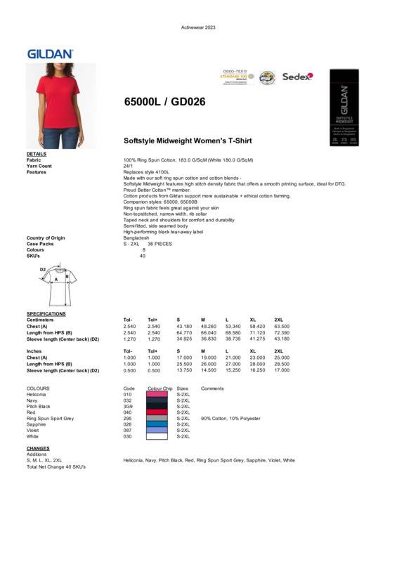 This women’s t-shirt is crafted from super-soft ringspun cotton fibre to make a perfectly dense 185g fabric that’s amazingly soft to wear and perfect to print. Its stylish, semi-fitted cut makes it cool and contemporary.Made with our soft ringspun cotton and cotton blends, the Softstyle™ midweight women’s t-shirt features high stitch density fabric that offers a smooth printing surface, ideal for DTGRingspun fabric feels great against your skinNon-topstitched, narrow width, rib collarTaped neck and shoulders for comfort and durabilitySemi-fitted, side-seamed bodyHigh-performing black tear-away label.Accreditations: SEDEX|WRAP|Fair Labour Association (FLA) |Better Cotton|Oeko-Tex Standard 100|REACHAge Group: AdultFabric: 100% Ringspun CottonGender: FemalePlus Size: NoProduct Type: T-ShirtsSize Range: S–3XLSizing To Fit: S 8/10 M 10/12 L 12/14 XL 14/16 2XL 18/20 3XL 22/24Tag: Tear-awayWashing Instructions: Machine wash 30°C°. Use non-chlorine bleach. Do not iron. Tumble dry on low heat. Do not dry clean.Weight (GSM): 183gsm. White: 180gsm]]>