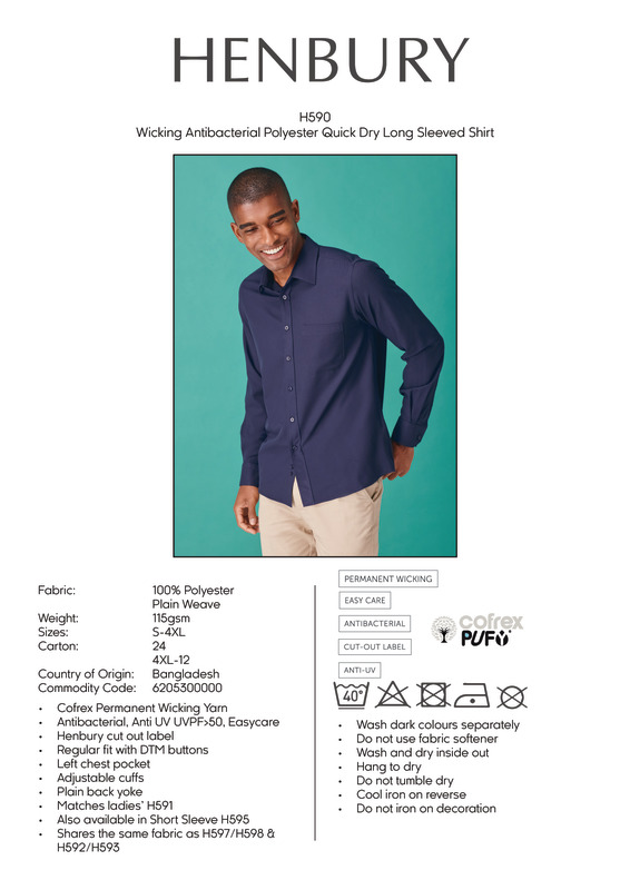 Feel comfortable and stay fresh in our Cofrex/Pufy® permanent wicking fabric that allows you to perform your best at work. With modern style features in a regular fit, this style will look and feel great.Cofrex/Pufy® polyester permanent wicking yarn with Anti-bacterial finishKeeps the wearer fresh and dryAnti-UV UVPF 50Quick dryExcellent colour retentionRemovable, cut out back neck label for easy re-brandingWRAP certifiedSEDEX certifiedBSCI certified.Accreditations: Amfori BSCI|Sedex|WRAPAge Group: AdultFabric: 100% Cofrex/Pufy® PolyesterGender: MalePlus Size: YesProduct Type: ShirtsSize Range: S to 4XLSizing To Fit: S 36/38″ M 38/40″ L 42″ XL 44/46″ 2XL 48″ 3XL 50/52″ 4XL 54″Tag: Tear-outWashing Instructions: 40 synthetic. Do not bleach. Do not tumble dry. 1 dot iron. Do not dry clean. Wash at 40 degrees. Wash and dry inside out. Wash dark colours separately. Do not use fabric softener. Dry out of direct heat and sunlight. Hang to dry. Cool iron on reverse. Do not iron decorationWeight (GSM): 115gsm]]>