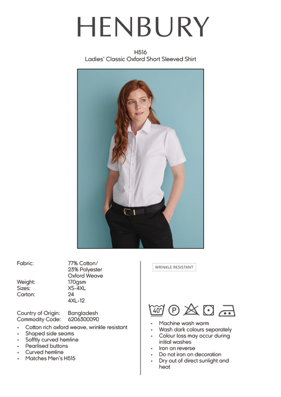 The style that never goes out of fashion. Our classic fit Oxford shirt is the essential piece for your corporate wardrobe. In a heavyweight weave with wrinkle-resistant finish these shirts are durable and able to function in all environments.Classic Oxford with wrinkle resistant finishPearlised buttons on blue options, DTM on all othersWomen's fit with shaped side seams and scooped hemWRAP certifiedSEDEX certifiedBSCI certified.Accreditations: Amfori BSCI|Sedex|WRAPAge Group: AdultFabric: 77% Cotton, 23% PolyesterGender: FemalePlus Size: YesProduct Type: ShirtsSize Range: XS to 4XLSizing To Fit: XS 8 S 10 M 12 L 14 XL 16 2XL 18 3XL 20 4XL 22Tag: Sewn TagWashing Instructions: 40 synthetic. Do not bleach. 2 dot iron. Low Tumble Dry. P dry clean. Wash at 40 degrees. Wash dark colours separately. Dry out of direct heat and sunlight. Machine wash warm. Colour loss may occur during initial washes. Iron on reverse. Do not iron on decoration.Weight (GSM): 170gsm]]>