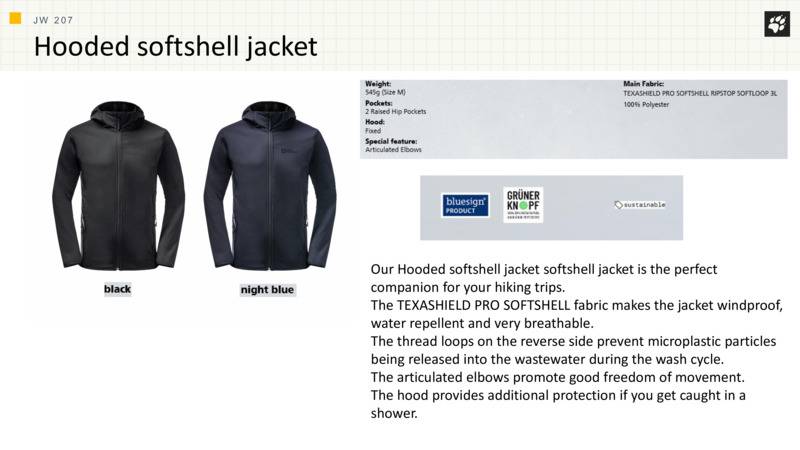 This hooded softshell jacket is the perfect companion for your hiking trips. The TEXASHIELD PRO SOFTSHELL fabric makes the jacket windproof, water-repellent and very breathable. Thread loops on the reverse side prevent microplastic particles being released into the wastewater during the wash cycle. The articulated elbows promote good freedom of movement, and the hand pockets are positioned slightly higher, so you can access them easily when carrying a pack. The hood provides additional protection if you get caught in a shower.Breathable, softshell jacket with hoodWindproof, water-repellent.Age Group: AdultFabric: Shell: 100% Polyester. Lining: 100% PolyesterGender: MalePlus Size: NoProduct Type: SoftshellsSize Range: S – 2XLSizing To Fit: S 38″ M 40″ L 42″ XL 44/46″ 2XL 48″Tag: Sewn TagWashing Instructions: Close all zips and fasteners. Wash with similar colours. Do not use softener. Heat treatment recommended for optimum function. Do not iron print.]]>