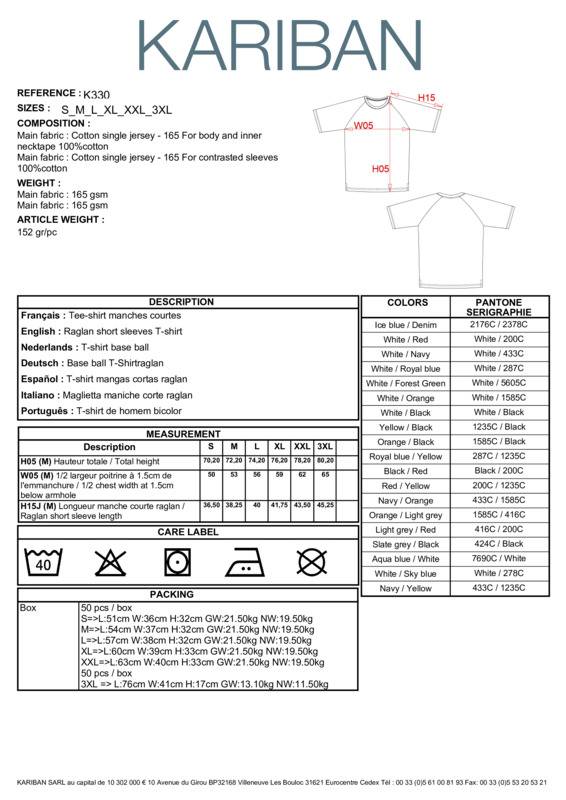 Kariban Baseball Short-sleeved two-tone T-shirt