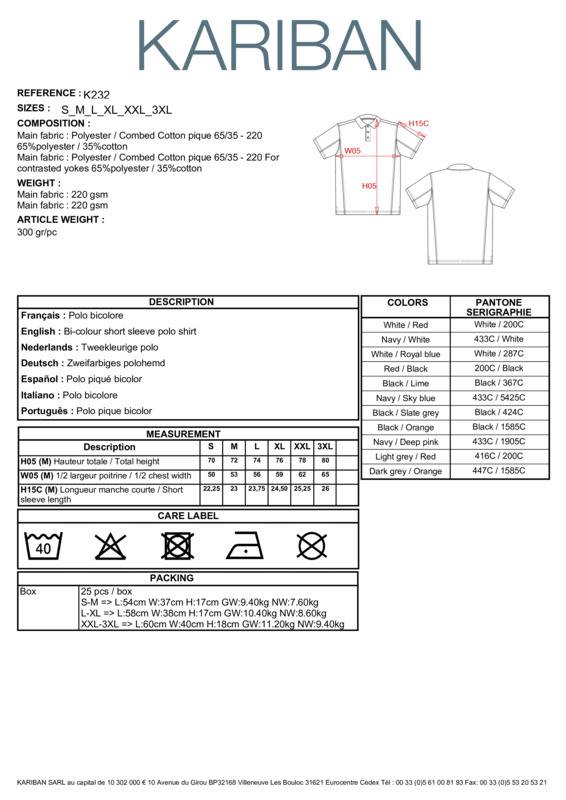 65% polyester/35% cotton. Piqué knit. Ribbed collar. 3-button matching placket. Contrast panels down arm and sides. Self-fabric cuffs. Certified STANDARD 100 by OEKO-TEX® N° CQ 1007/7, IFTH.65% Polyester 35% Cotton, Piqué KnitRibbed collar3-button placketContrast panels down arm and body sidesHemmed sleevesSide ventsTwin needle finishingBSCI certifiedOeko-Tex certifiedSEDEX certifiedWRAP certified.Accreditations: Amfori BSCI|Oeko-Tex|Sedex|WRAPAge Group: AdultFabric: 65% Polyester, 35% Cotton piqué knitGender: MalePlus Size: NoProduct Type: PolosSize Range: S to 2XLSizing To Fit: S 36″ M 38″ L 40″ XL 42″ 2XL 44/46″Tag: Sewn TagWashing Instructions: Iron at low heat - 110°C maximum. Wash at 30°C - Mild programme. Do not bleach. Do not tumble dry. Do not dry clean.Weight (GSM): 220gsm]]>