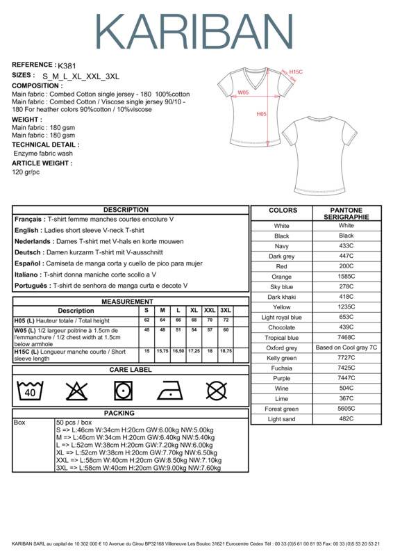 Kariban Ladies' short-sleeved V-neck T-shirt