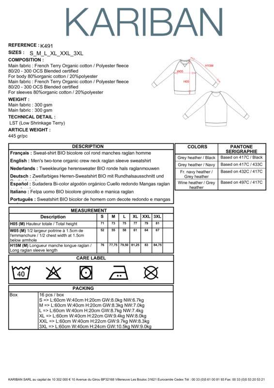 Kariban Men's two-tone organic crew neck raglan sleeve sweatshirt