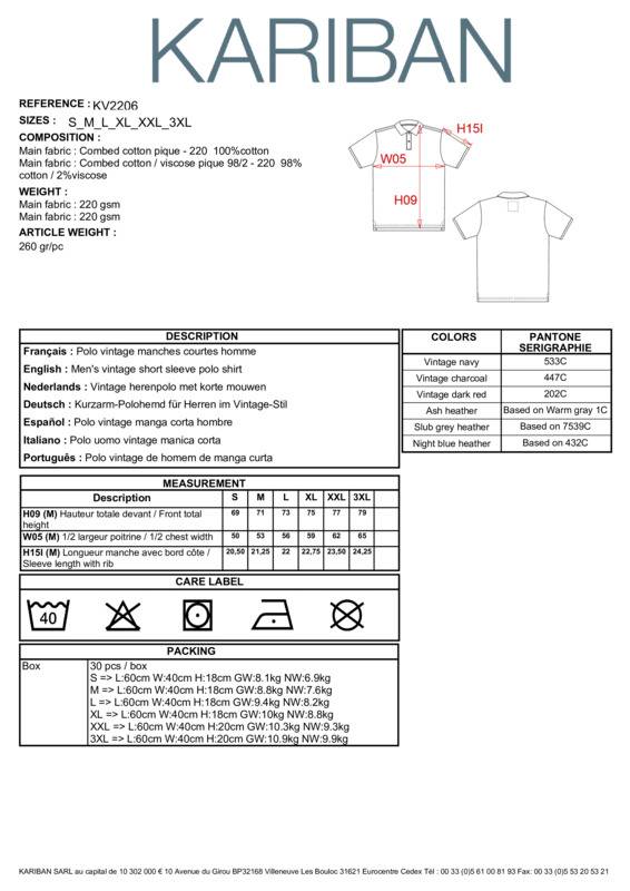 100% cotton (Ash Heather : 98 % cotton / 2 % viscose). Vintage look piqué knit. Ribbed neck. Double herringbone twill taped neck and side slits. Placket with 2 contrasting buttons. Twin needle finish at hem and ribbed cuffs. This product has been specially treated and appears intentionally aged. This manufacturing process results in colour variations between products and makes each piece unique. No brand label at neck, only size information for easy relabelling. Certified STANDARD 100 by OEKO-TEX®N° CQ1007/7, IFTH.Ribbed neckDouble herringbone twill taped neck and side slitsPlacket with 2 contrasting buttonsTwin-needle finish at hem and ribbed cuffsThis product has been specially treated and appears intentionally agedThis manufacturing process results in colour variations between products and makes each piece uniqueBSCI certifiedOeko-Tex certified.Accreditations: Amfori BSCI|Oeko-TexAge Group: AdultFabric: 100% Cotton. Ash Heather: 98% Cotton, 2% ViscoseGender: MalePlus Size: NoProduct Type: PolosSize Range: S to 2XLSizing To Fit: S 36″ M 38″ L 40″ XL 42″ 2XL 44/46″Tag: TaglessWashing Instructions: Washable at 40°. Do not bleach. Low temperature drying. Iron at max 110°C. No solvent.Weight (GSM): 220gsm]]>