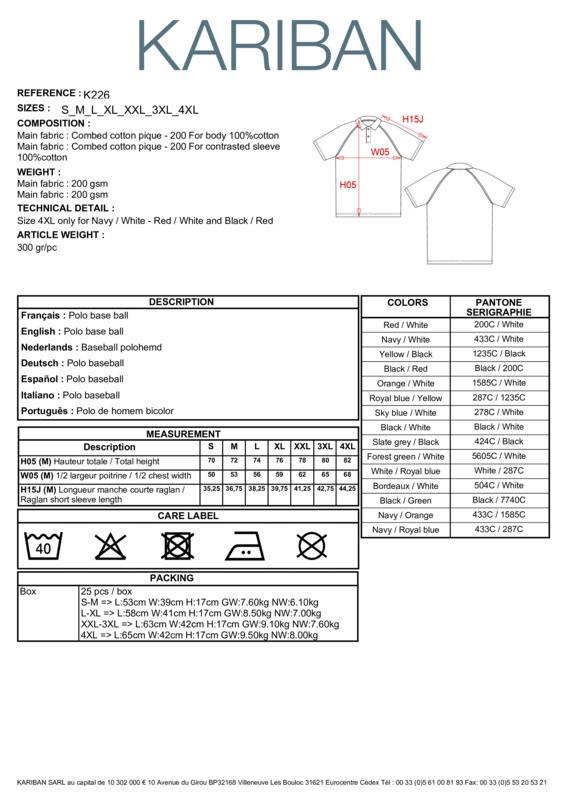Kariban Polo baseball contrast polo shirt