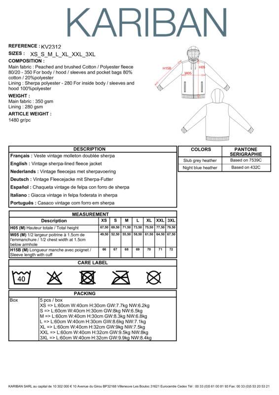 80% cotton / 20% polyester. 100% Polyester fully sherpa-lined. 2 piped front pockets. Metal zip fastening. 4x4 ribbed neck, hood edge, cuffs and hem. 2 invisible zippers on left chest and left seam for decoration access. This product has been specially treated and appears intentionally aged. This manufacturing process results in colour variations between products and makes each piece unique. No brand label at neck, only size tag for easy relabelling. Certified STANDARD 100 by OEKO-TEX®N° CQ1007/7, IFTH.2 piped front pocketsMetal zip fastening4x4 ribbed neck, hood edge, cuffs and hem2 invisible zippers on left chest and left seam for decoration accessThis product has been specially treated and appears intentionally agedThis manufacturing process results in colour variations between products and makes each piece uniqueBSCI certifiedOeko-Tex certified.Accreditations: Amfori BSCI|Oeko-TexAge Group: AdultFabric: 80% Cotton, 20% Polyester. Fully Sherpa-lined: 100% PolyesterGender: MalePlus Size: NoProduct Type: FleeceSize Range: XS to XLSizing To Fit: XS 34″ S 36″ M 38″ L 40″ XL 42″ 2XL 44/46″Tag: TaglessWashing Instructions: Washable at 40°. Do not bleach. Do not iron. Drum drying prohibited. No solvent.]]>