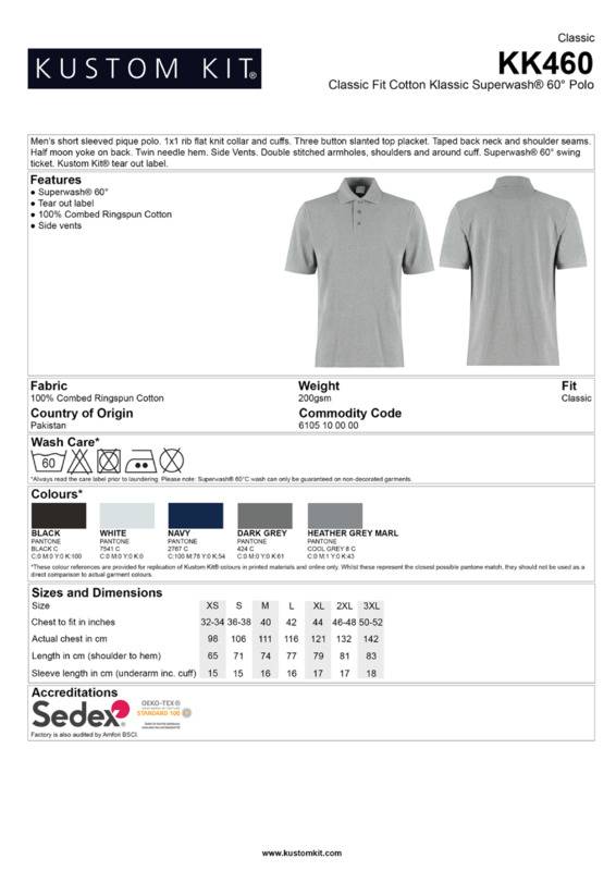 Kustom Kit Classic fit cotton Klassic Superwash® 60° polo