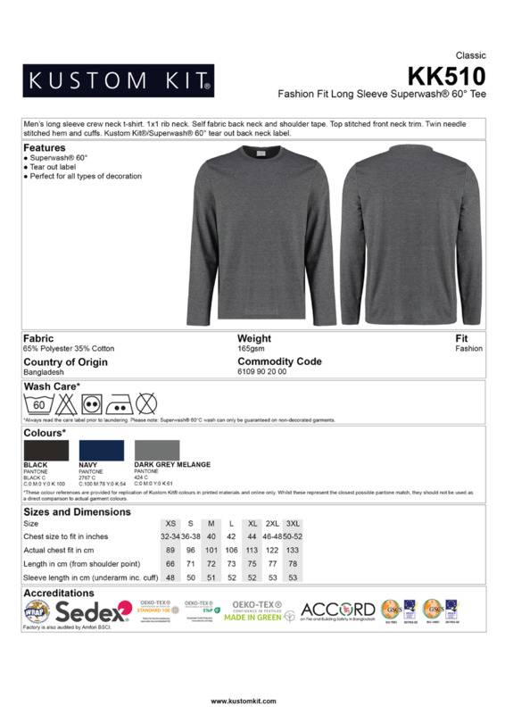 Kustom Kit Long sleeve Superwash® 60°C tee (fashion fit)